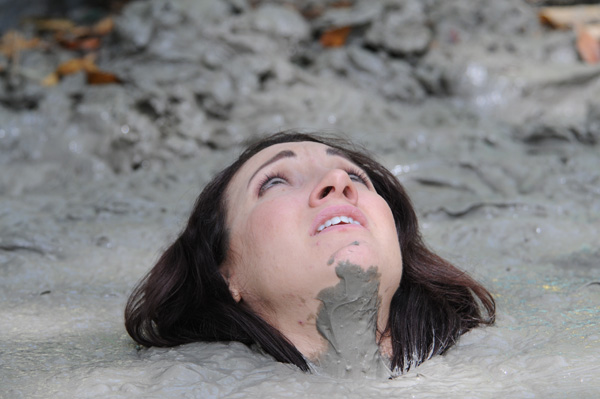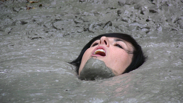 Crystal is a "therapist at a spa and Dixie is a client. They go to a mud bath in the forest and both get in. Dixie is skeptical but she gets in. After some time in the mud Crystal tries to activate a machine that will give Dixie the experience of being sucked under, but the machine seems to malfunction and they are both pulled under, with Crystal panicky and Dixie delighted. After the machine shuts off and they pop back up, Dixie has Crystal turn the machine on again for a second dunking.