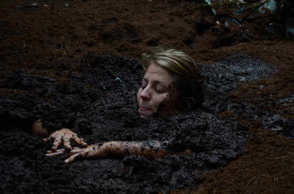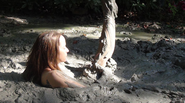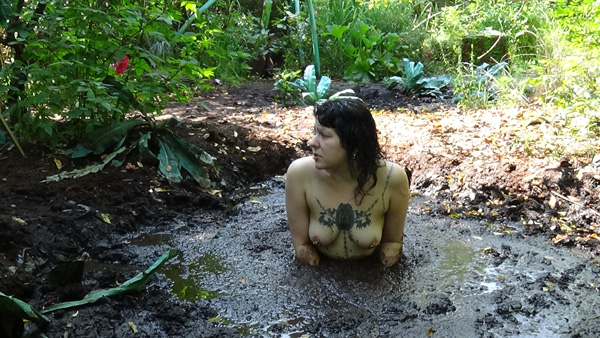 Rachelle is a construction worker on a house project but when she gets to the project there is no one else there. Its a hot day so she decides to extend her lunch break for the whole afternoon by a near by mud pit for a hot wallow.
