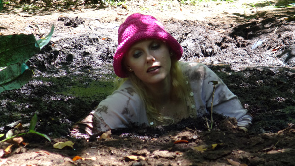 As the scene opens, Melissa is on the run after committing a murder in a knife fight. If she can get to the river she might be able to elude the bloodhounds. She gets to the river. Well almost to the river. There is sort of peaty muddy place between her and the river. But those dogs are coming. The mud turns out to be a bit deeper than it appears, so there will be no need for an arrest, trial, or punishment.
