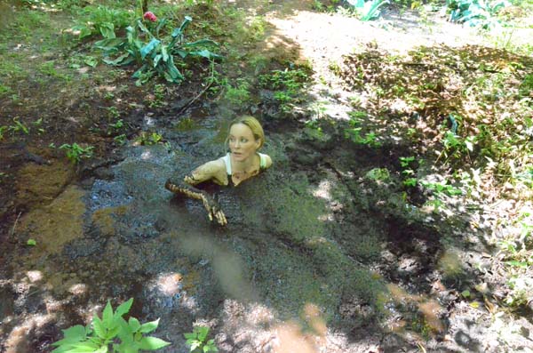 Bella is obsessed with protecting the border from, well, anyone. Acting on her own she has done things to funnel the expected hordes into a mudpit. And then she makes the mistake of trying to defend the mudpit itself. She suddenly hears what she thinks is a border crosser (it was probably really a cross-dressing squirrel). She aims her pistol and fires. The net result is the recoil from her pistol causes her to fall backwards into her own mudpit. There is now one border mudpit left undefended.