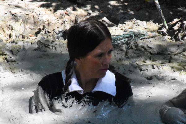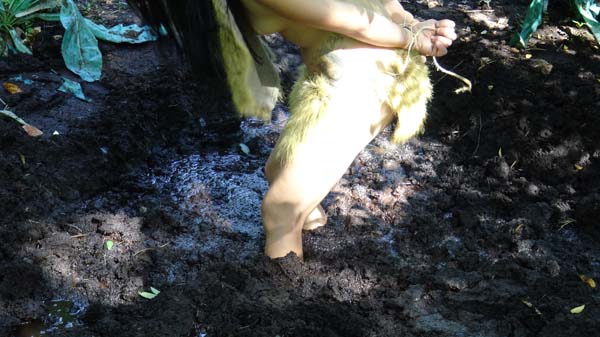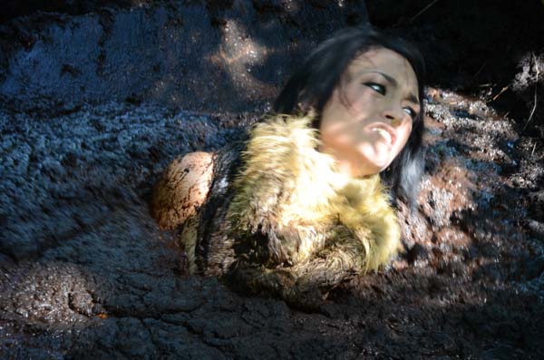 Karma has been accused of witchcraft and faces a trial by nature. She must stand on the unstable surface of a bog for one hour. If she sinks under she was guilty and suitably punished. With a name like "Karma" we all know she is guilty.