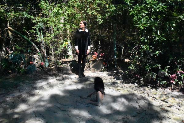 While out on a wilderness hike, Bella is being stalked by someone (the camera as "you") and she knows it. She alters her path so as to walk around the edge of a bog. The stalker is more focused on her than where he is going and blunders into the bog. Bella now returns and begins to taunt the stalker as he slowly sinks, She goes so far as to strip to the waist. Then she goes even further by getting into the bog on the far side and to gradually approach the stalker closer and closer. By the time the stalker is neck deep, Bella is almost in the stalker's face. Its seems Bella knows how to move in a bog and the stalker clearly does not. In the end the stalker does not get what he apparently wanted but he does get what he deserves.