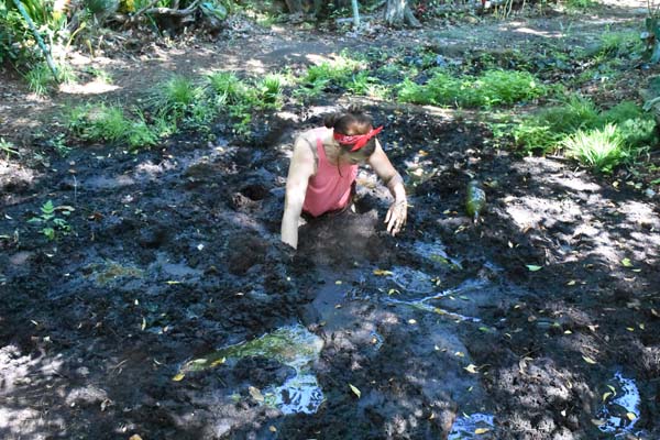 Jaded has become tired on a group hike and has fallen behind. Trying to catch up but not paying attention she knocks herself out walking into a low-hanging branch. When she wakes up she is in a daze and soon blunders into a bog. Her friends do eventually come to her aid but are not sympathetic that she is playing around in a mud pit.