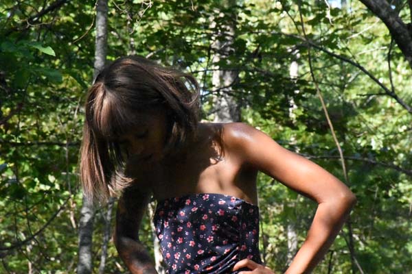 While out on a hike through the forest, Karma becomes aware she is being stalked. Being very capable, she leads the stalker around the perimeter of a peat bog. As she knows about the bog she goes quickly around, but the stalker, not knowing about it, blunders straight in and is promptly stuck, and sinking. Karma returns to confront the stalker. She taunts him without mercy. Then she takes off her top, enters the bog herself, and starts across toward the helpless stalker. To the stalker she implies she is going to give him what he wants, but instead gives him what he deserves.