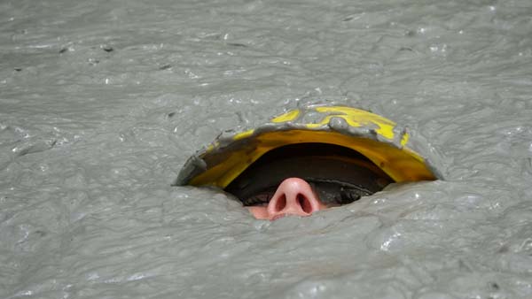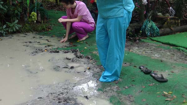 As the scene opens two mud maidens surface from beneath the mud. At the end they re-submerge. In between they have a pleasant wallow. Actually, although we called this one Mud Maidens, I think Mud Nymphs might have been a better title.