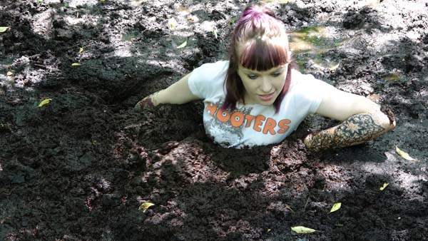 Many of us probably tend t think of a girl who likes to play in deep mud as a 21st century thing, but here Karma plays a pirate in costume from maybe the 17th, heading into the forest, away from the other pirates, to her favorite bog. There she mostly disrobes, gets in, and has a muddy time.