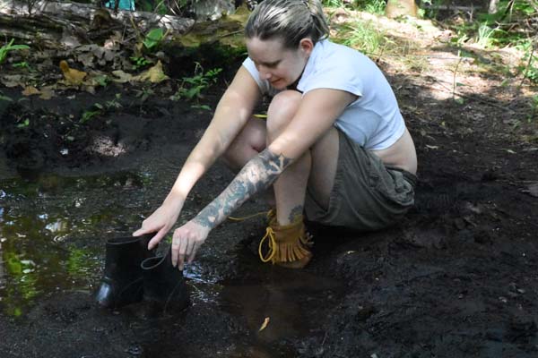 Melissa just MUST have those boots she finds stuck in a bog, But the bog just MUST have Melissa. The bog wins.