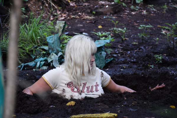 The people in the rural bar have taken away her car keys because she is too drunk to drive. So, she tries to walk home using an old trail through the forest. Unfortunately for Barbie there is quicksand in the way.