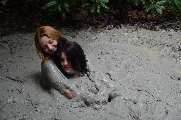 Ahna has just finished a shoot at Studio 588. After a celebratory glass of wine, Fred says he is tired and goes to bed. When he is gone, Ahna decides she has not had enough and heads outside for another mud wallow. This one features the Galium Polykryptonite pit at night.