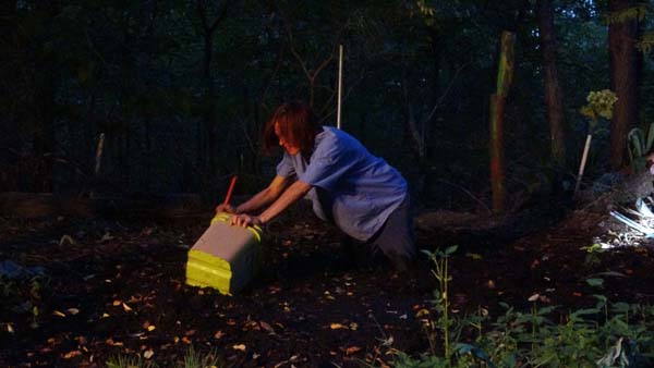 Kennedy goes to the swamp at night to try to catch bullfrogs. Bullfrogs do not particularly like to be caught and eaten so maybe they have something to do with causing her to fall in. Or maybe the bog is just hungry.