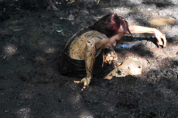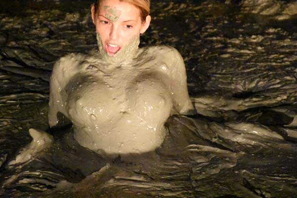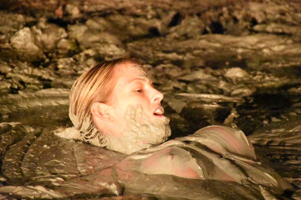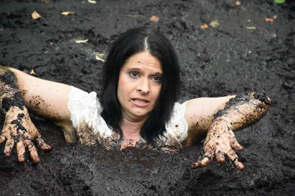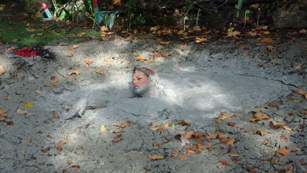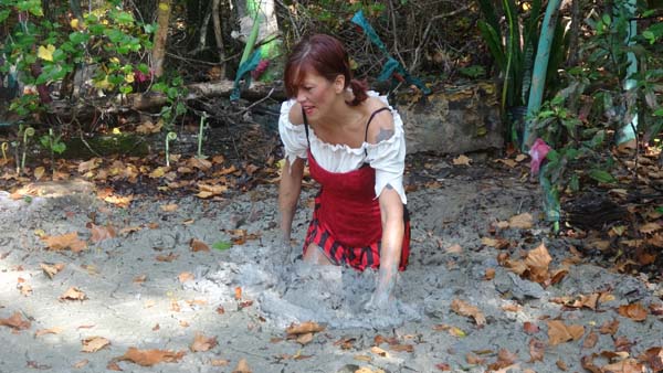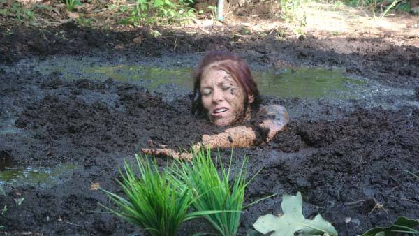 After the final scene of a shoot has been filed, Fred heads up to headquarters with the cameras while Bella finished cleaning up. But she has not had enough and gets back in the mud. She is surprised when returns and tries to say she just fell in, but is just a bit embarrassed when Fred informs her it is four in the morning.