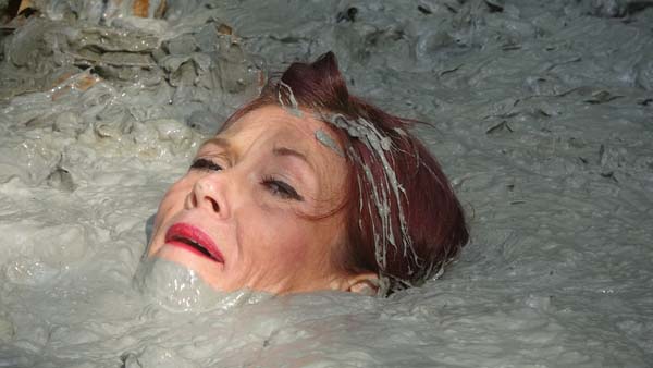 The shoot is over and being celebrated over glasses of wine. Fred says he is tired and goes to bed. Blu, however, has not had enough and sneaks out to enjoy the mud pit one more time.