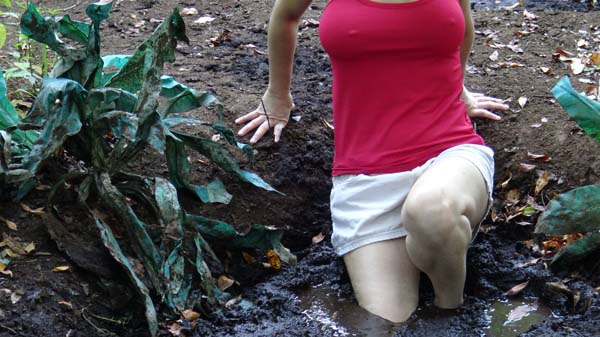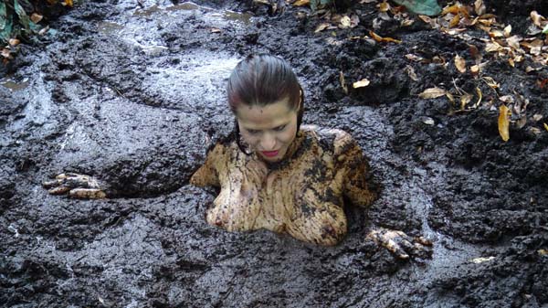 Visting Psychic World JungleLand, Kennedy has wandered into PirateLand. She is captured by the head pirate and his perverted sidekick Clem. They do not have a plank for her to walk - because they do not have a ship,.... or an ocean - but they do have a pit of quicksand. They offer her a series of last requests, which she uses to remove most of her clothing, and to have her hands tied behind her back, and then in she goes.