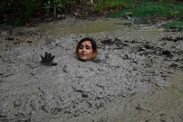 Stefani has a thing for mud. This time she daydreams and finds herself suspended topless over a bog. And this is no nightmare.