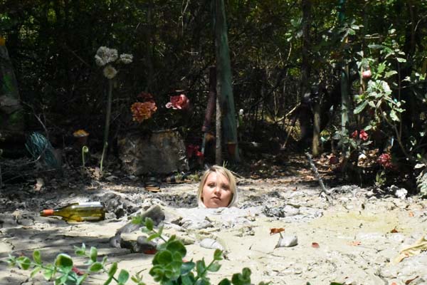 As this one begins Stefani is fleeing from some ort of slavery condition. She falls into quicksand. In the end her pursuer arrives and tries to pull he out but she chooses to go under rather than go back.