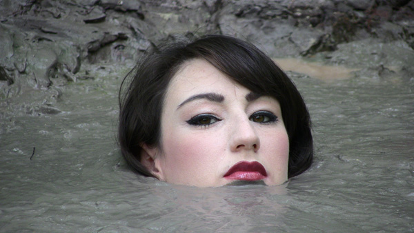 Elvira lights several torch light, disrobes to a thing bottom, and enters her favorite mudpit for some relaxation. Viewers might tend to find this night scene more stimulating than relaxing, however.
