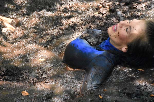 The initiation test to qualify to join the Touchtone Club is to stay out in the forest all night, alone, and nearly naked. Bella accepts the challenge but then the mosquitoes arrive. She tries moving around, walking faster and faster to avoid them but that causes her to blunder into a pit of quicksand she did not know about. At first she is stricken with panic. Then she calms down when her feet touch the bottom but becomes frustrated about being stuck. When she discovers how to move around and crawls out, the mosquitoes return. Then she gets back in and enjoys the mud all night.