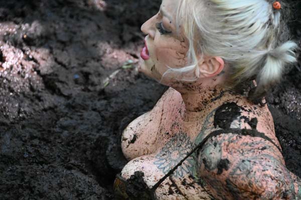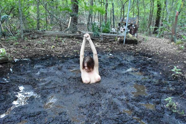 Karma gathers some supplies for a party and brings them in a wheelbarrow to the party deck. But no one has shown up. She gets a bit angry and drinks some of the liquor, then starts looking around, figuring this is some sort of prank. But when she finds a quicksand pit, she gets in and things improve. This is the only scene released by Studio 588, and as far as I know by anyone, that includes a handstand in the mud as part of the scene.