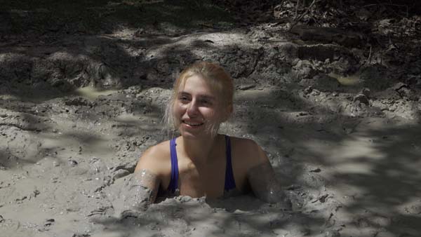 Rachel is cleaning up after the last scene of a shoot at Studio 588. Fred excuses himself, saying he is getting old and is tired, leaving her to finish cleaning up by herself. As soon as he is gone, Rachel gets back into the mud. She has not had enough mud and the shoot is over. Fred eventually returns, asking if she is ok. She tries to claim that she "fell in," but Fred is skeptical because it is 4AM and it was 9PM when he left before.