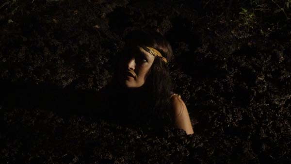 Bella plays a hippie-type. She is out in the forest foraging for mushrooms. After collecting a good bunch, she tries one. Just a little bite. She instantly starts hallucinating, and, unfortunately for her, there is a bog nearby.