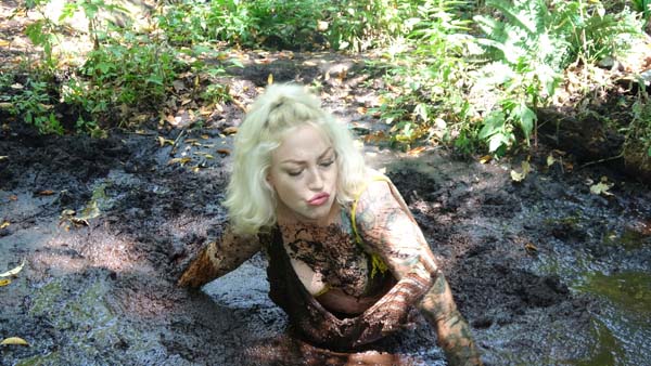 The shoot is over, but Zelda has not had enough mud. So, after Fred goes to bed, she sneaks outside for another sink. HOT!