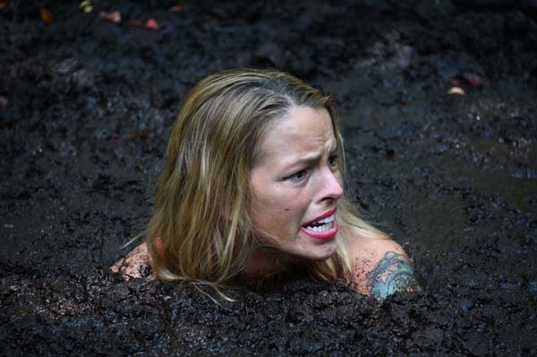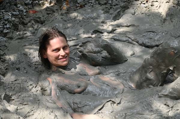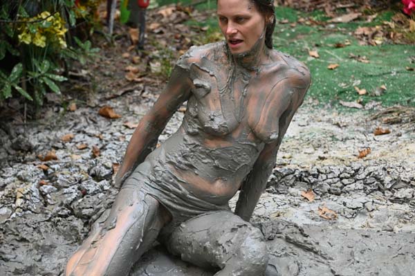 Bella is a park police officer. She officiously chews out someone she finds exploring one of the mud pits. No sooner has the offender gone than Bella herself strips down for a wallow. She will face a bit of Karma later that afternoon, as she has forgotten to bring a towel for cleanup.