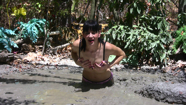 Nyxon adapts her regular webcam session to take place in a deep mudpit. This scene is essentially a simultaneous sink a strip tease.