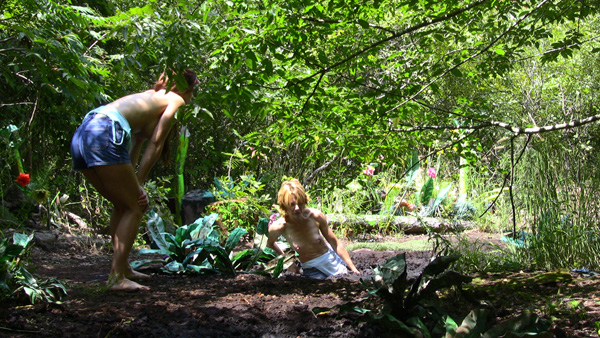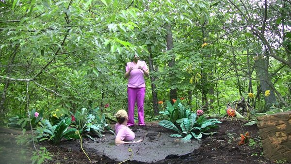 Aside from being a Hannah Perez scene this is also a cave girl scene!. As the scene opens, Hannah is a cave girl climbing a tree to get some food. Suddenly the trunk of the tree, below her, is swarming with ants. She backs away along a large horizontal branch, eventually using her top to try to swap them away as they follow her. Then she falls out of the tree, landing in a peat bog below. Afficionados of very slow final submergences will really like the ending of this one.