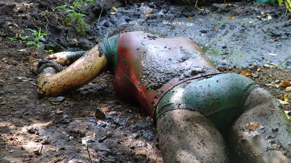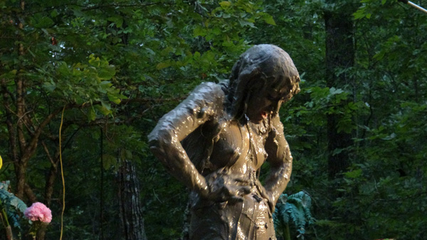 This a very hot scene so stay seated with the heart medicine nearby while watching. Persephone arrives at her favorite peat bog on a hot, summer night. She rubs herself down with baby oil, removing her top in the process, and then climbs into the mud for an evening of muddy pleasure. The scene proceeds through a submergence, re-emergence, and eventual exit from the pit.