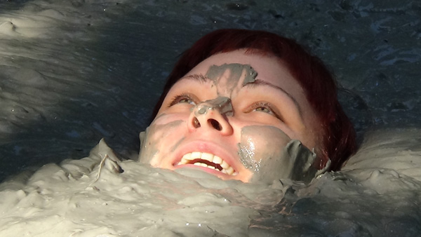 Based on an actual incident during the 2015 season, Karma, Athena, and Alix are climbing out of the clay pit after a scene when Fred's voice congratulates them on having finished a three-day shoot. The girls, however, have not had enough and promptly get back in for a pleasure sink. Very hot.