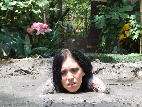 NormaGee has just purchased a new Mudmaster III exercise pit and tries it out. But she has not really read all of the instructions about its bubble-producing feature.