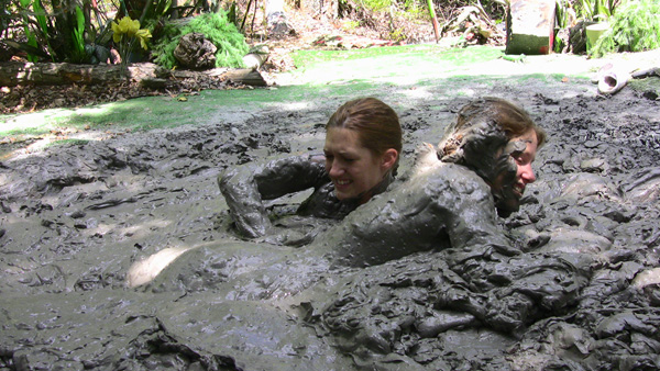 Stefani and Hannah have been rivals for years, over everything including husbands. They do not like each other much, to put it mildly. They encounter each other in the forest on the way to a soccer camp and the fireworks begin immediately. When Stefani swats Hannah's ball away it lands in a mud puddle. Things degenerate from there into even more of a catfight. At the end, after Hannah goes under Stefani laughs that she has finally won, even though she is already up to her chin. She goes under a few seconds later.