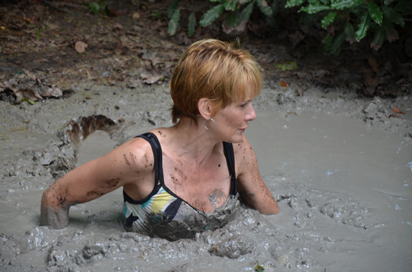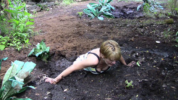 On her way to a photo shoot in the jungle, Nocturnal is rendered unconscious by a poisoned dart from a blowgun. When she wakes up, still groggy, she is standing on the surface of an unstable mud bog (clay), held upright by the fact of being suspended by a vine tied to her wrists. She sinks slowly but inevitably as the vine stretches, completely under, except for her arms which are still tied to the overhead vine.