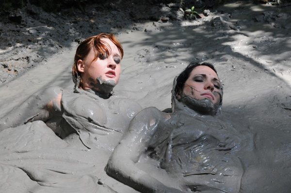 Hannah and Angelique are trying some back country camping. While out gathering firewood they play a game of HORSE, in which one challenges the other to do something and then must do it themselves if the challenge is met, and each getting a letter for a failure until one is the horse. Encountering a mud puddle the challenges involve that until one falls in to what is a bit more than a mud puddle. In the end they both go under.