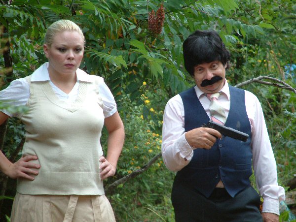 The incomparable Brinke Stevens plays the incomparable Jane Bond, breaking into the headquarters of the evil billionairre, Major General Frederick von Chaos. When the alarm sounds she has to beat a retreat, perhaps a bit hastily.