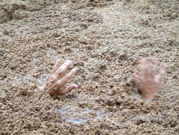 Taylor is the model in a quicksand photo shoot. After a lengthy series in front of a green screen the shoot moves to a quicksand pit.