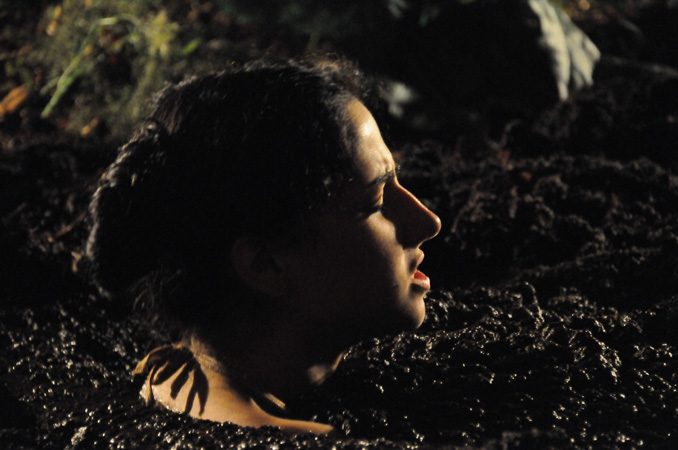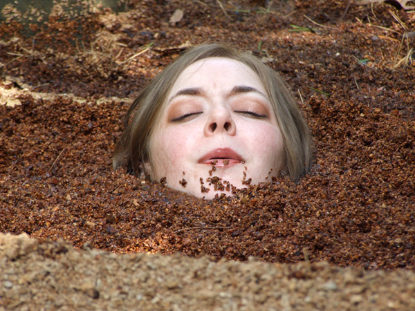 Tabitha gets very drunk, wanders around and blunders into quicksand.