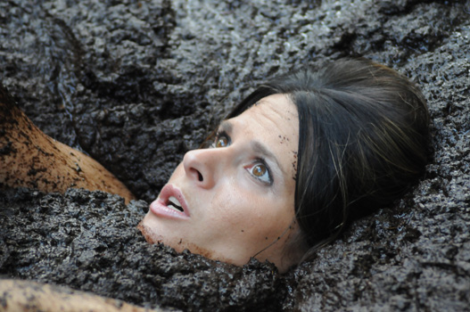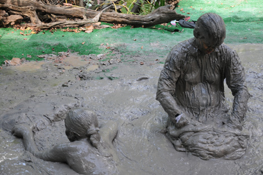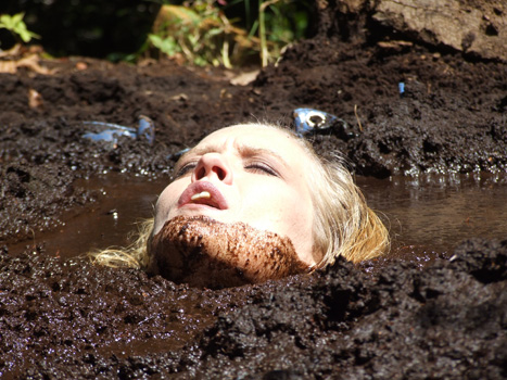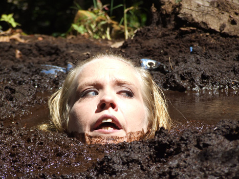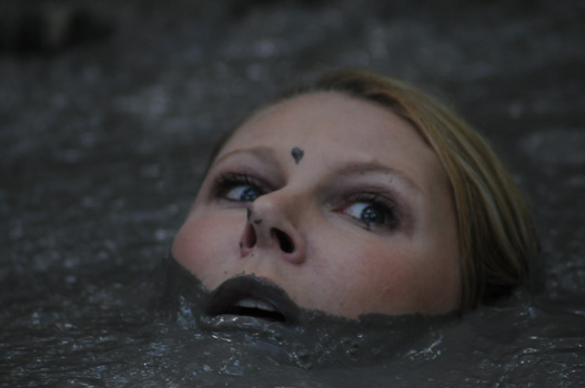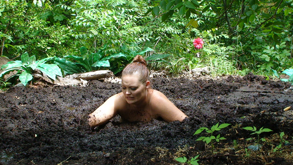 Debbie does her interpretation of the Sink/Strip Tease in the clay pit.