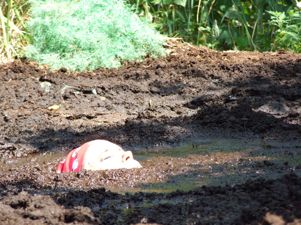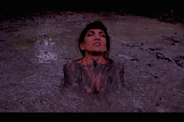 As this scene opens, Stormy is about to be executed by being dropped into a peat bog. Then she is dropped but manages to struggle free.... sorta.